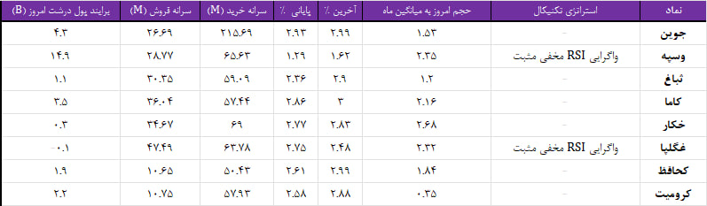 همچنین لازم است سایر جنبه های این نمادها از جمله تکنیکال، اخبار و … نیز بررسی شود. به عنوان یک پیشنهاد، از بین این نمادها، نمادهایی که مورد تایید شما نیز هست و سایر جنبه های ان را نیز بررسی کرده اید را در یک واچ لیست قرار دهید و در روز معاملاتی بعد به محض رصد تحرک خریداری کنید.